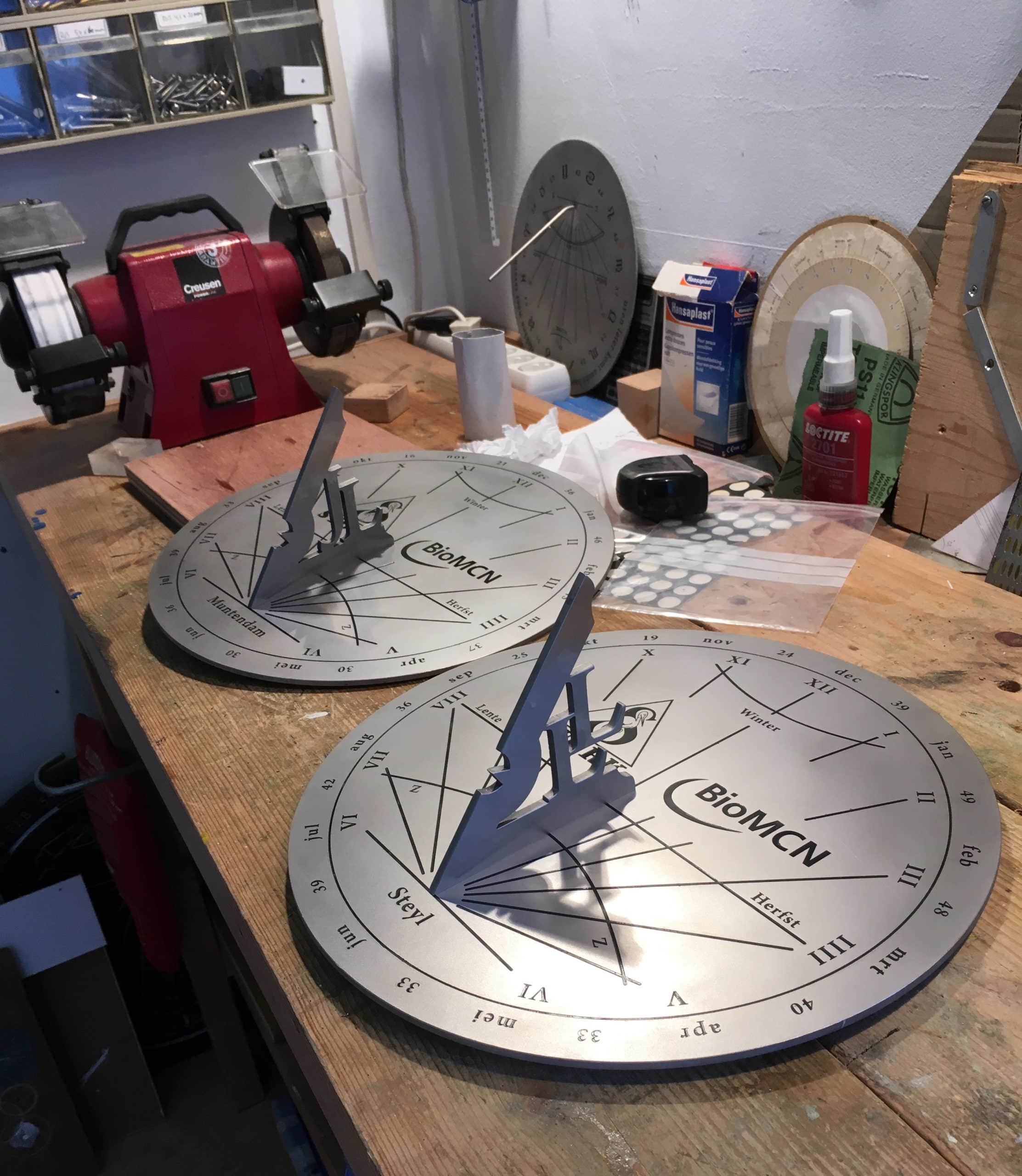 Met meer dan 20 jaar ervaring als zonnewijzer-bouwer helpt Hendrik Hollander u met een zonnewijzer kopen op maat. Hij zorgt ervoor dat direct aan de zonnewijzer is te zien dat het voor de plek en gelegenheid is gemaakt die u wenst. Bijvoorbeeld door het plaatsen van teksten, afbeeldingen of door een object te verwerken in het ontwerp van de schaduwwerper. Elke zonnewijzer die hij maakt geeft gegarandeerd de juiste tijd en datum aan. Neem contact met ons op voor het kopen van uw zonnewijzer op maat, dan kijken we wat haalbaar is voor een snelle levering.