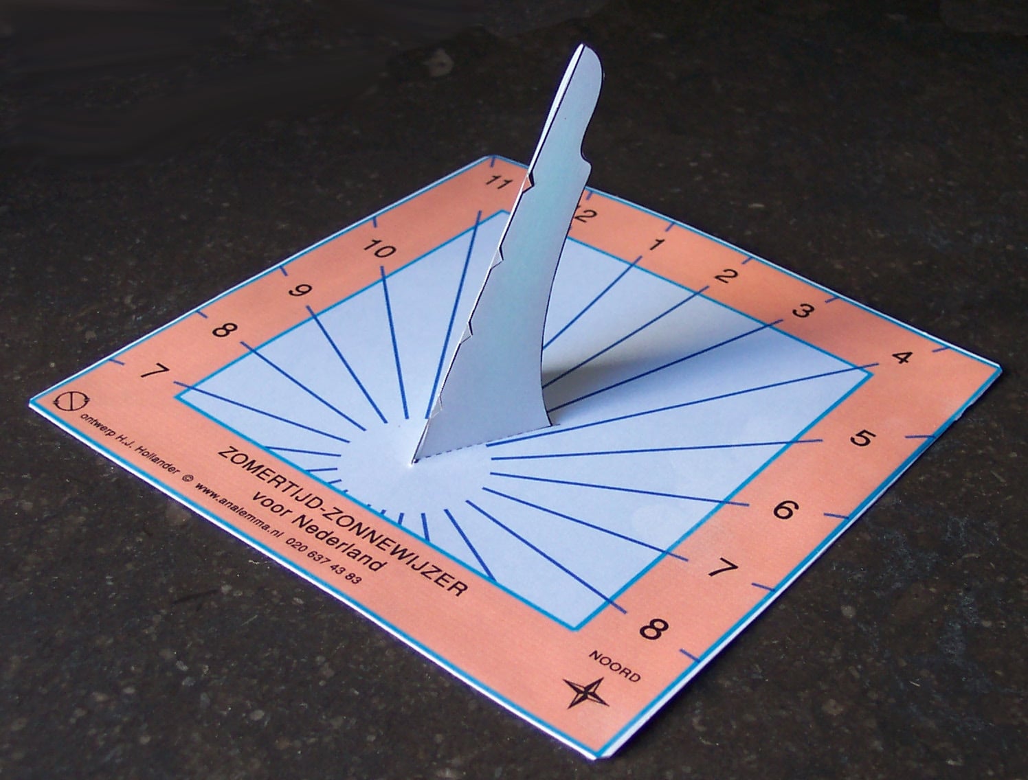 Met deze bouwplaat kun je een horizontale zonnewijzer maken die in Nederland direct de zomertijd aangeeft.